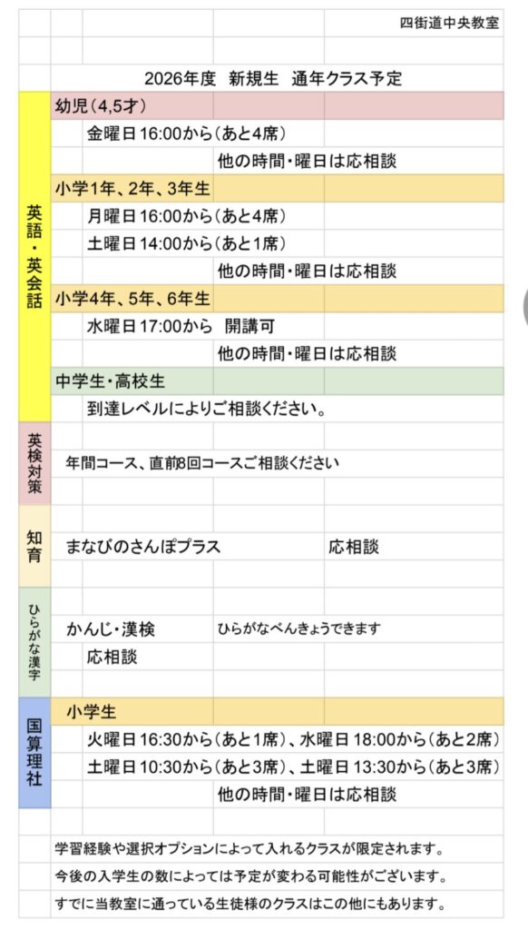 四街道中央教室 2026年度